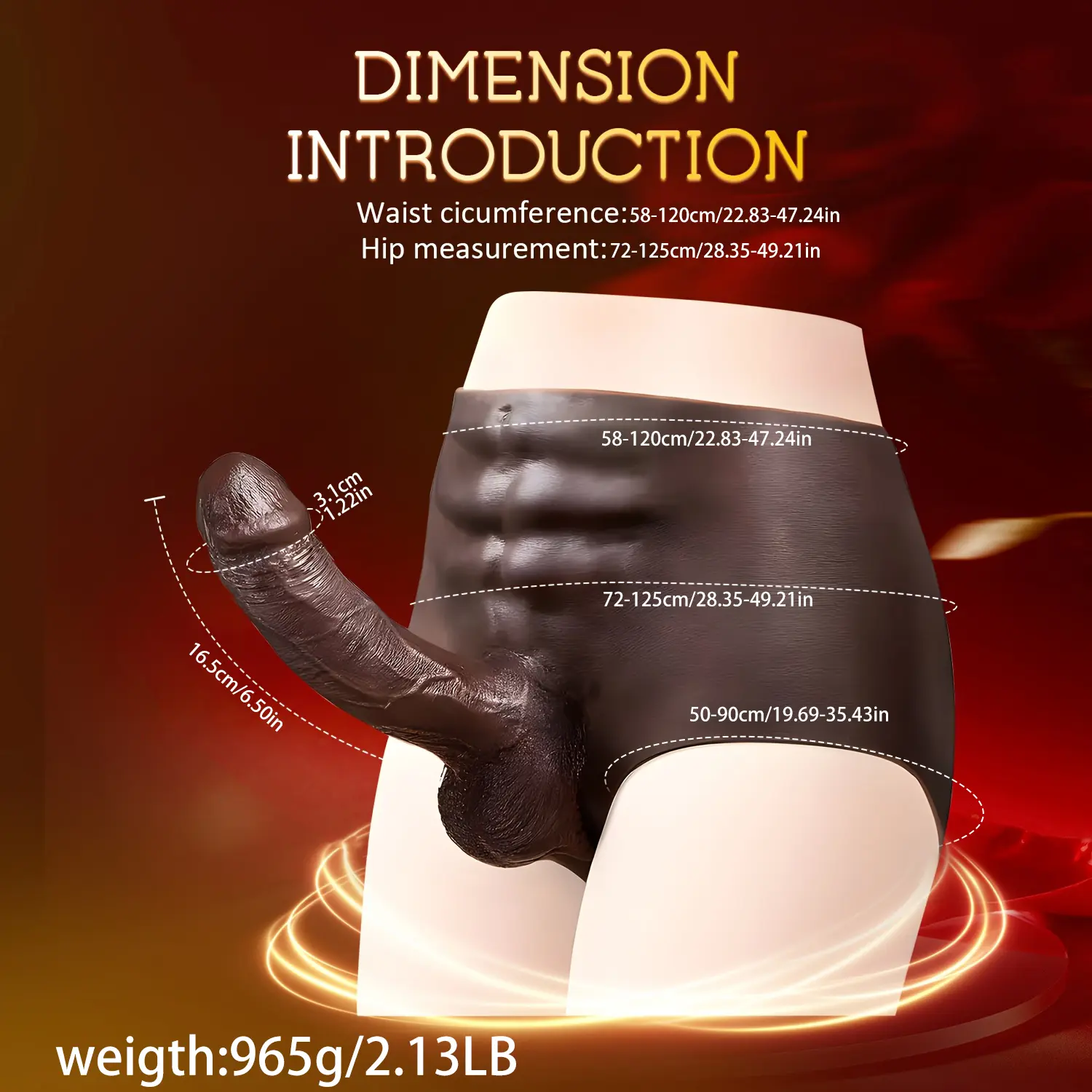 Muscle-Sculpted Support: The integrated panty base features a realistic muscle-textured design in matching dark tones. It is engineered to hold the substantial 965g weight securely, providing a seamless, ergonomic fit for the user.